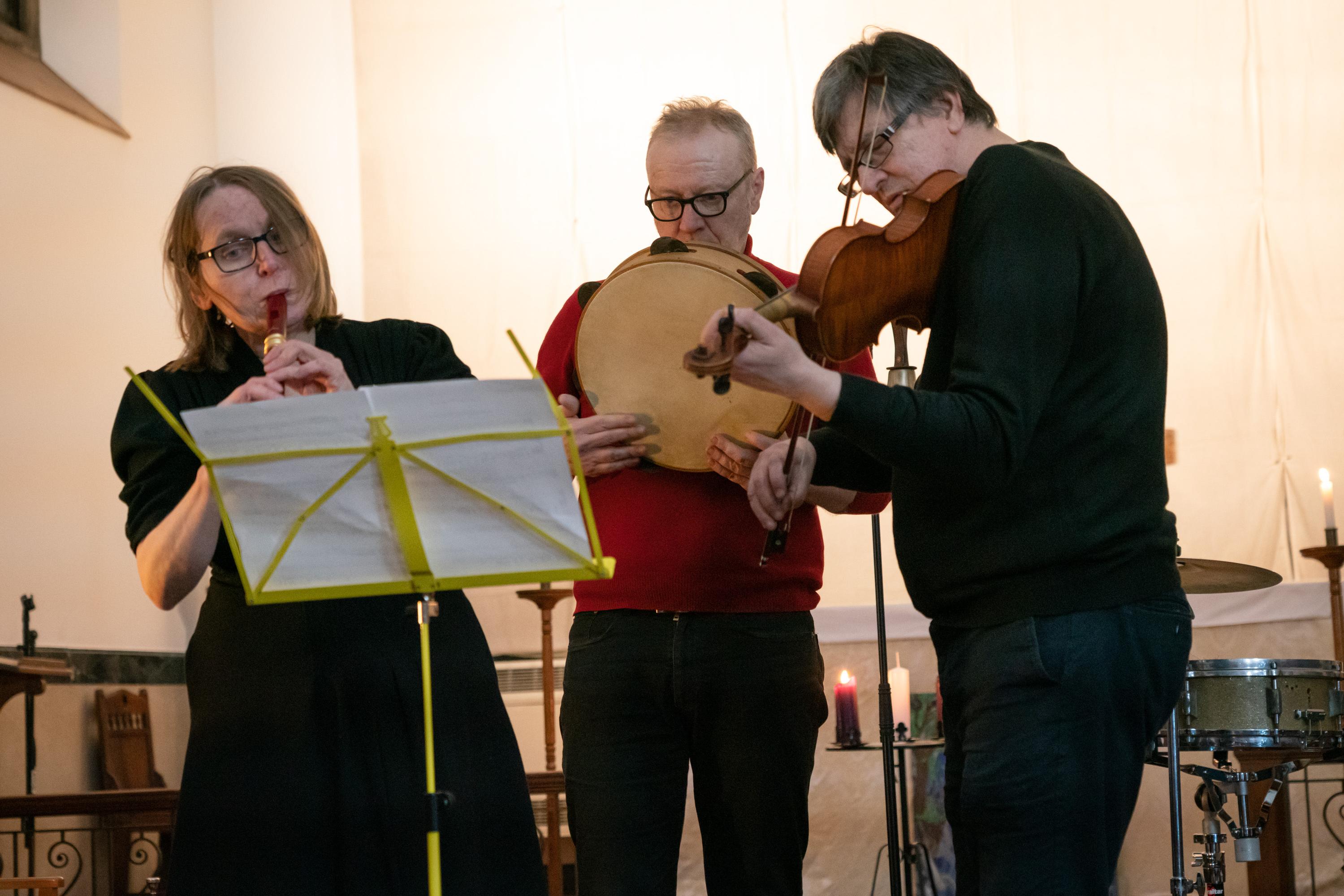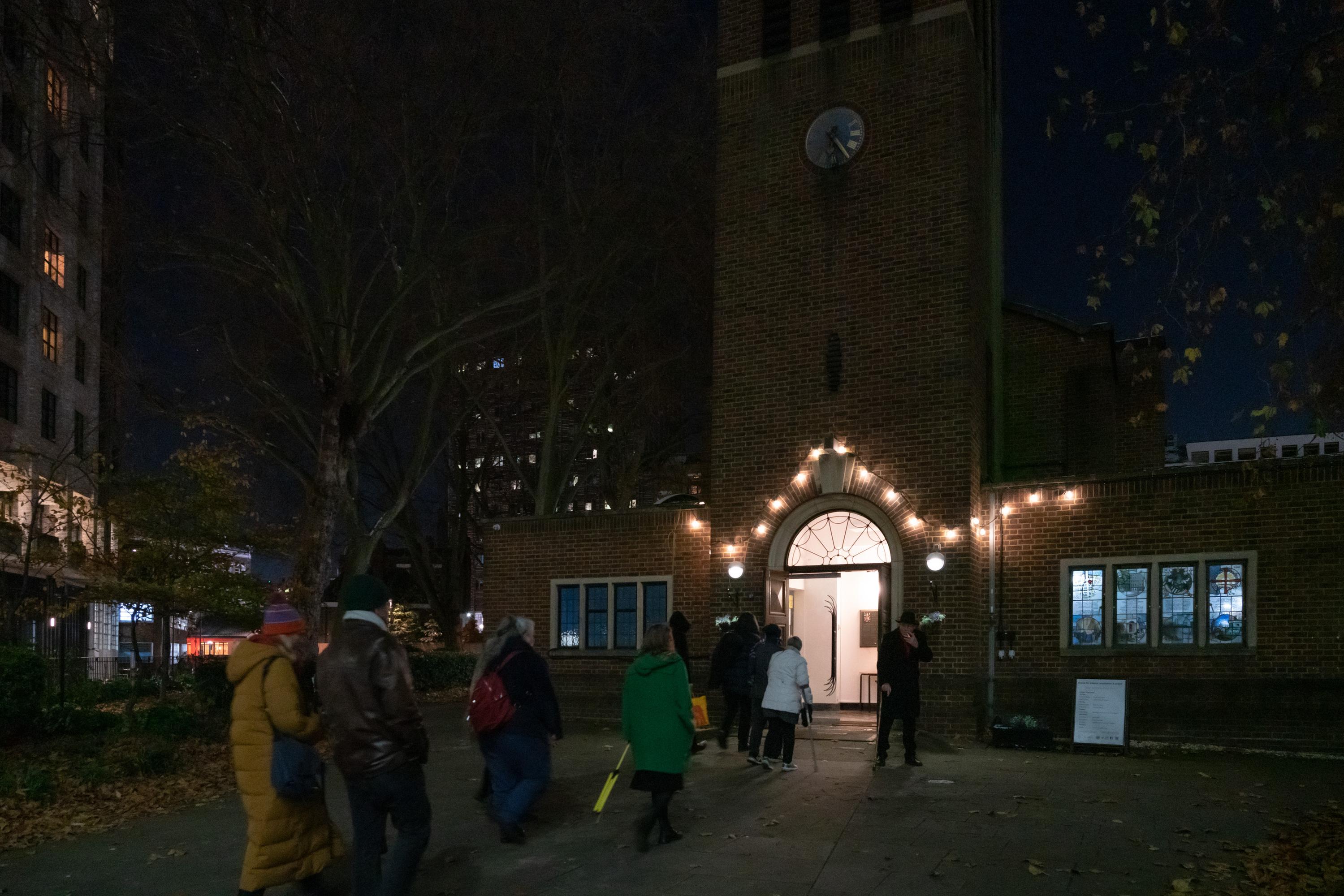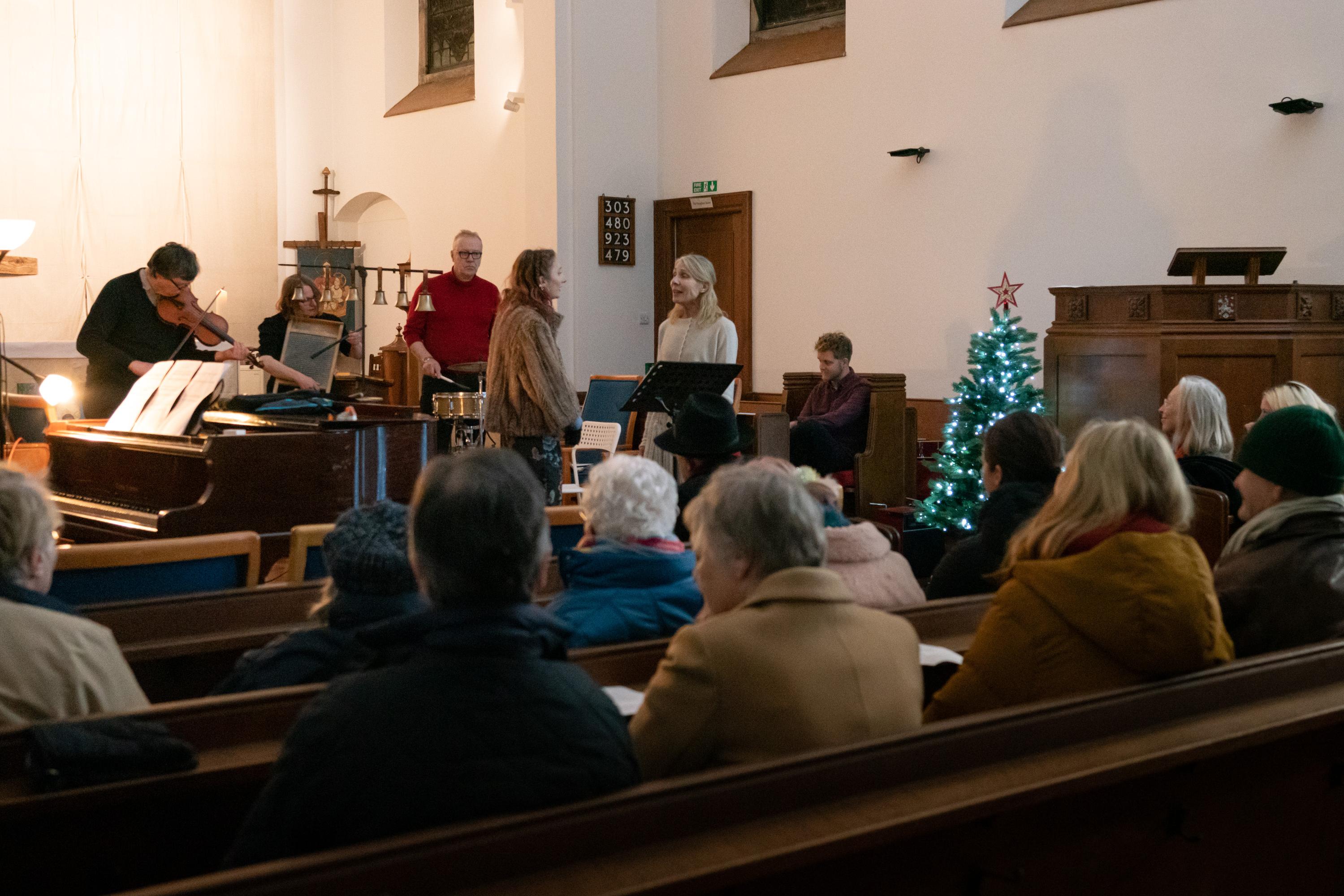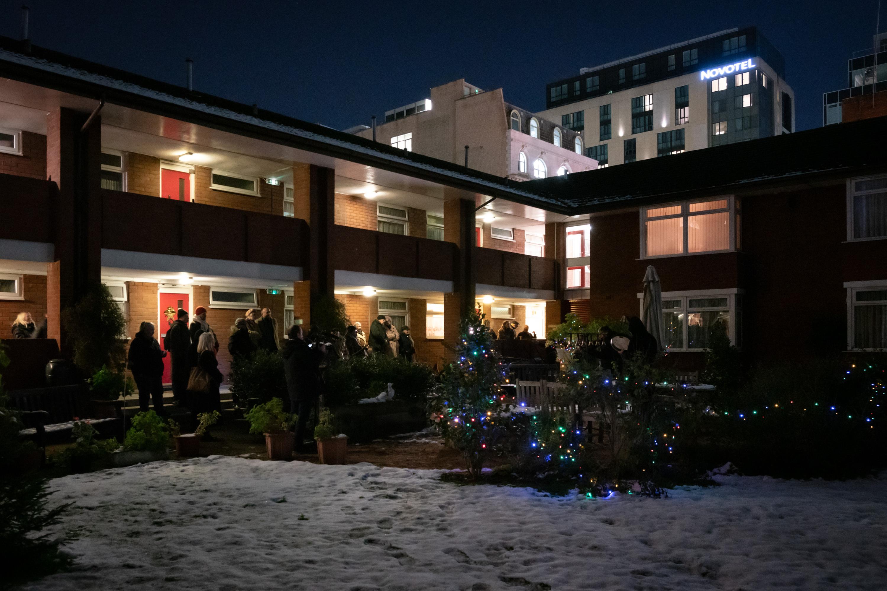 To mark the last Christmas in the old Edward Edwards House building we held a concert devised and performed by singer and composer Melanie Pappenheim and composer Sarah Angliss. The artists spoke with residents about their musical memories of Southwark to inform a programme featuring carols, folksongs and old-time favourites. The evening began with a magical acoustic set in the lamplit courtyard garden of the almshouse before we processed to Christchurch Southwark for the concert.
